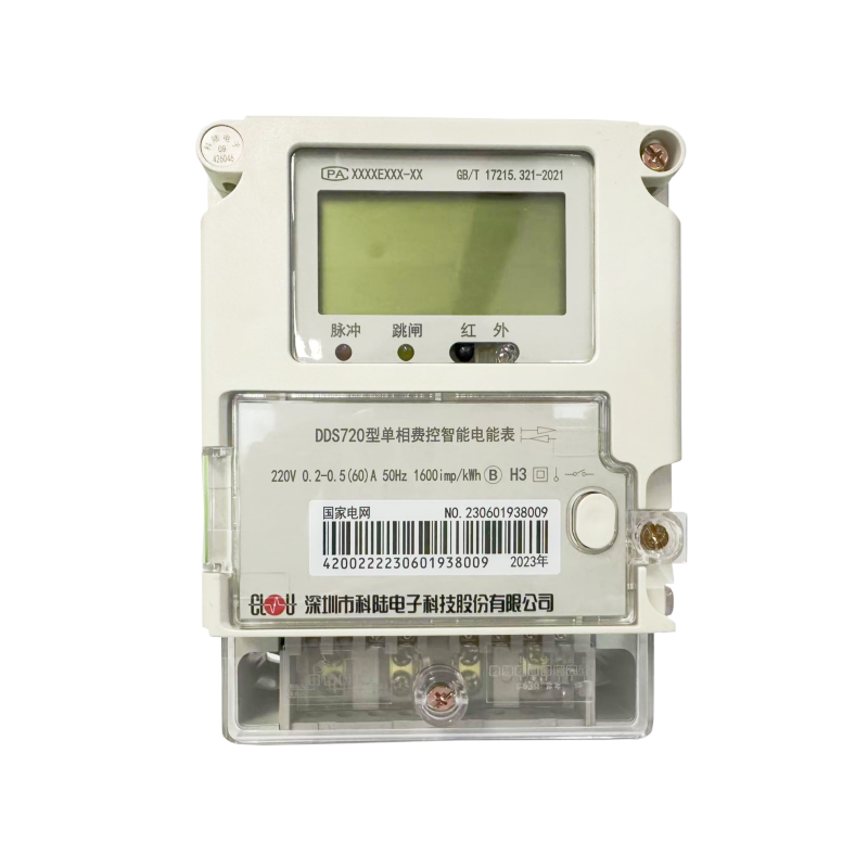 科陆DDS720单相电子式电能表(RS485),集计量、费率、显示、冻结、RS485通讯、红外通讯功能于一身,实现单个居民用户的用电计量和用电信息采集存储。